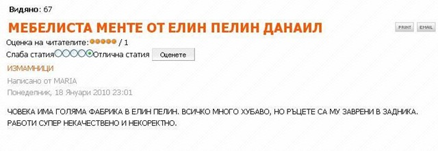 И по-долу две оплаквания който ме трогнаха. Първото е за мебелист на който всичко му е много хубаво освен ръцете които човека си е скрил на едно място и може би не се виждат. Втората е за един обсебвач.