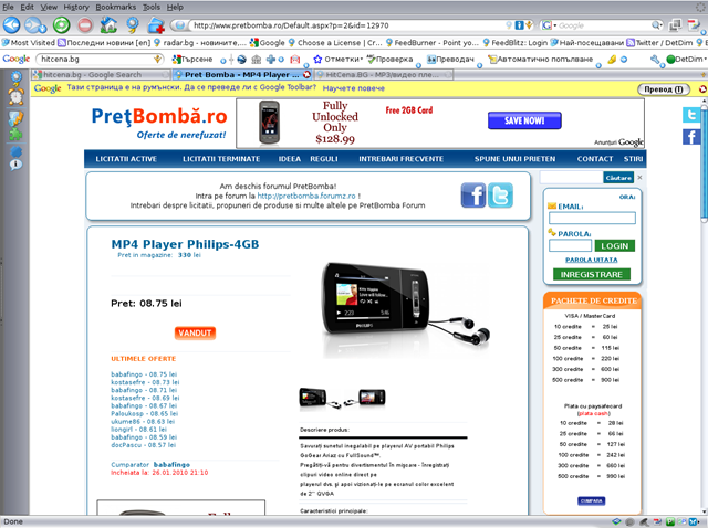 Намирам същия сайт обаче в Румъния. С друг адрес ама пък другото си е почти същото. Същото е времето, участниците, спечелилите. Разликата е в стоката. И даже не е съществена ама я има.