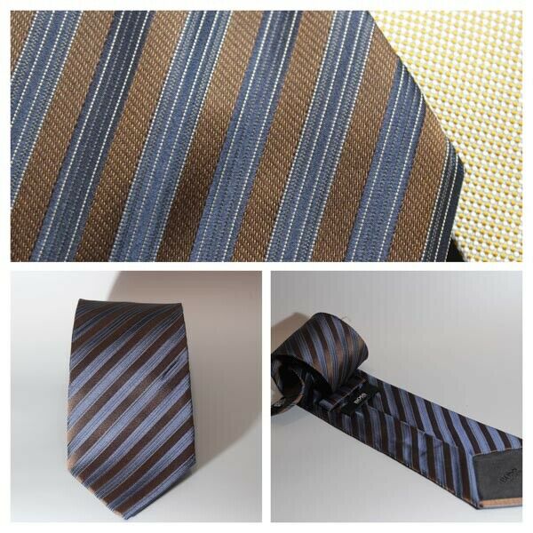 Men’s BOSS Necktie Casual Official Business Classic Navy Blue & Brown, Striped