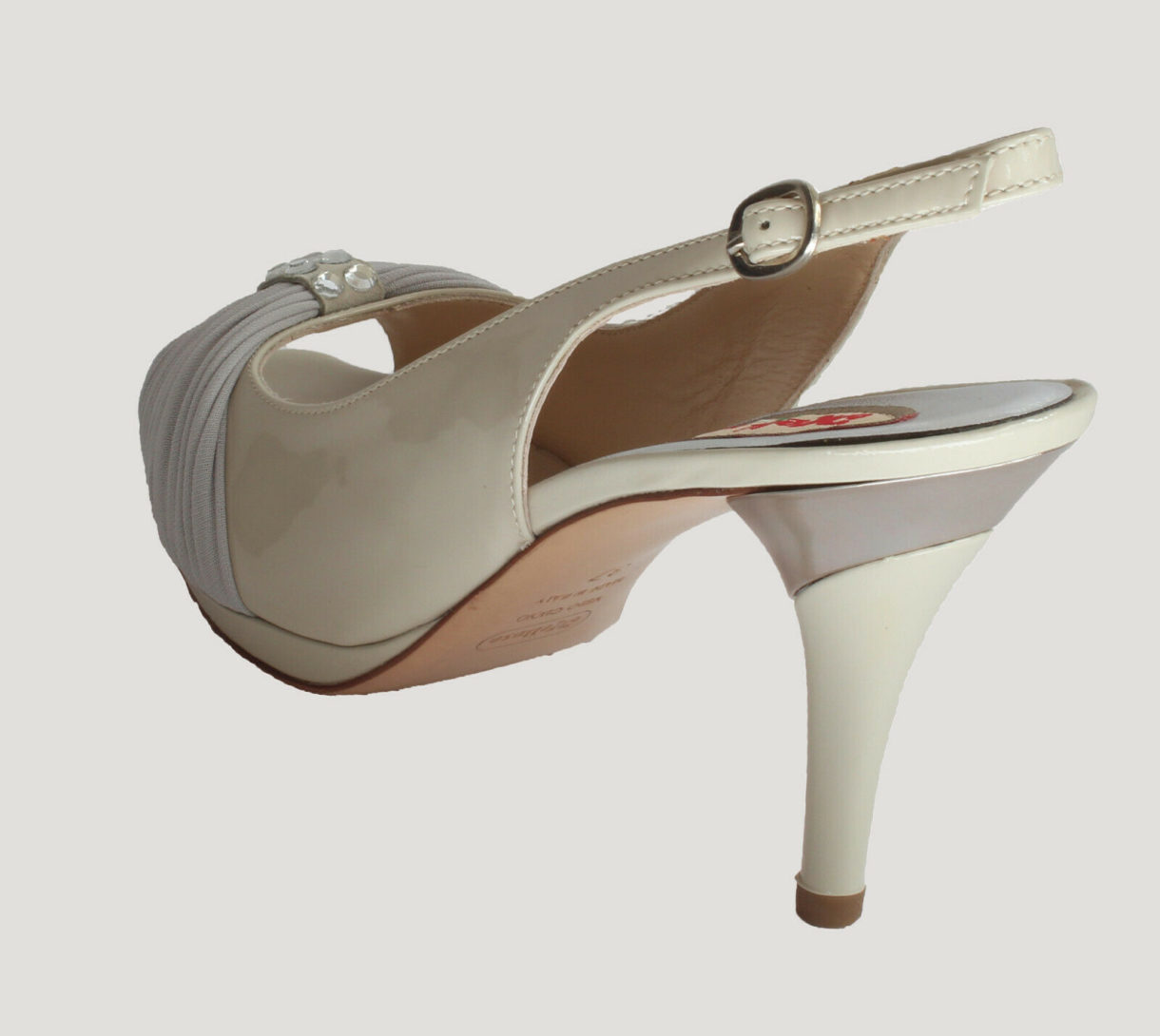 MELLUSO Women’s Sandals Ivory patent leather UK 4 Heel 8 cm stone accessory