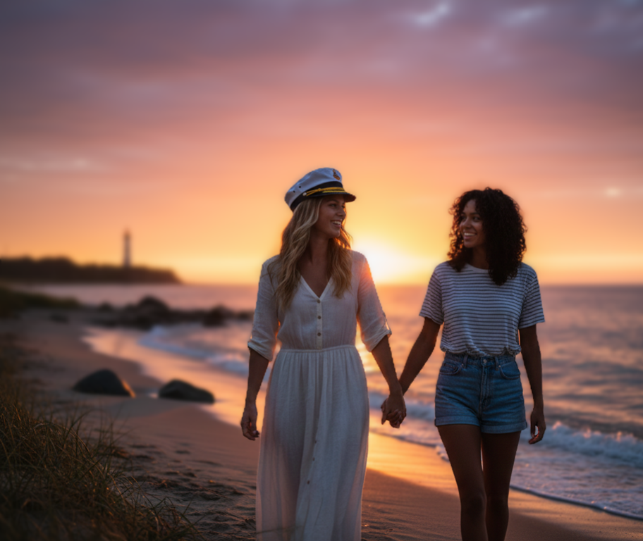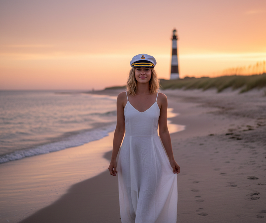 Before her, she sees not just waves, but endless possibilities. Her hat feels like a compass, pointing her towards new directions. Inspired, she’s embarked on sailing lessons – a hobby she had always dreamed of, but never quite found the time or courage to pursue. Each evening, her gaze sweeps across the distant horizon, and she vividly imagines herself at the helm of her own boat, feeling the wind in the sails and the intoxicating freedom that only the open sea can offer.