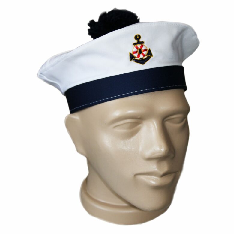 Personalized Sailor Hat – White Cotton with Blue Border and Anchor Embroidery – Ideal for Sailors and Parties!