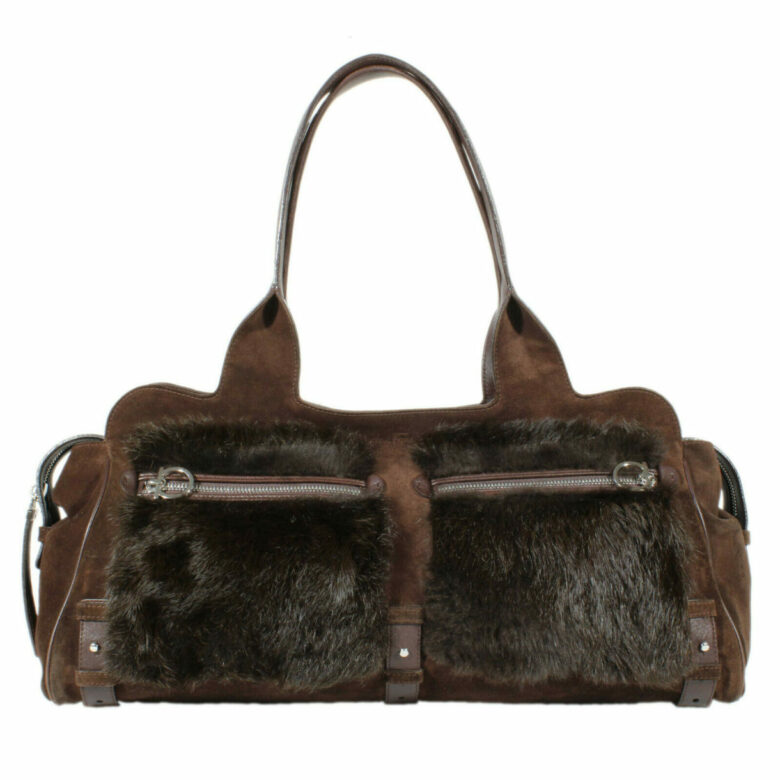 Salvatore Ferragamo Shoulder Bags Rabbit Fur Suede Leather