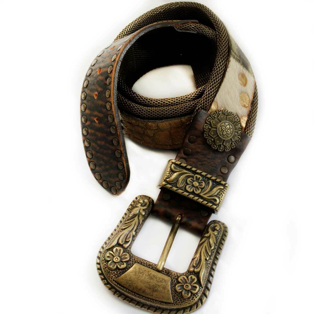 Unique NANNI Designer Metal & Pony Hair Chain Belt Ladies Embellished Belt. Famous Italian Brand NANNI.